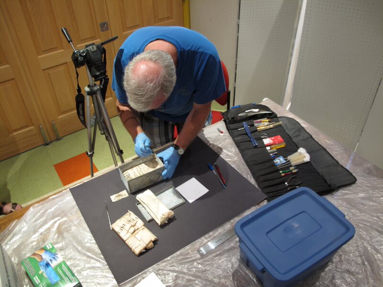 At the conclusion of his presentation, Bourassa outlined various steps conservators take before attempting to restore and preserve artifacts. The examination and assessment of artifacts are the first and most vital steps, he said. These steps include preparing a detailed description of artifacts and determining if and how they should be treated.